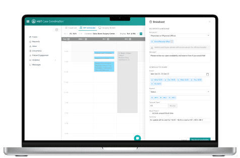 HST’s scheduling & care communication gives you real-time access to the important information you need to serve your patients. The practices you work with, as well as your staff, surgeons, anesthesiologists, and vendors, will always be in the loop.