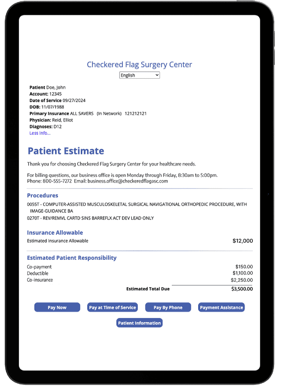 HST’s patient estimates manages the process of automatically calculating accurate, financial estimates for your scheduled patients. You’ll also be able to put a calculator on your ASC’s website to empower patients to create their own estimates.